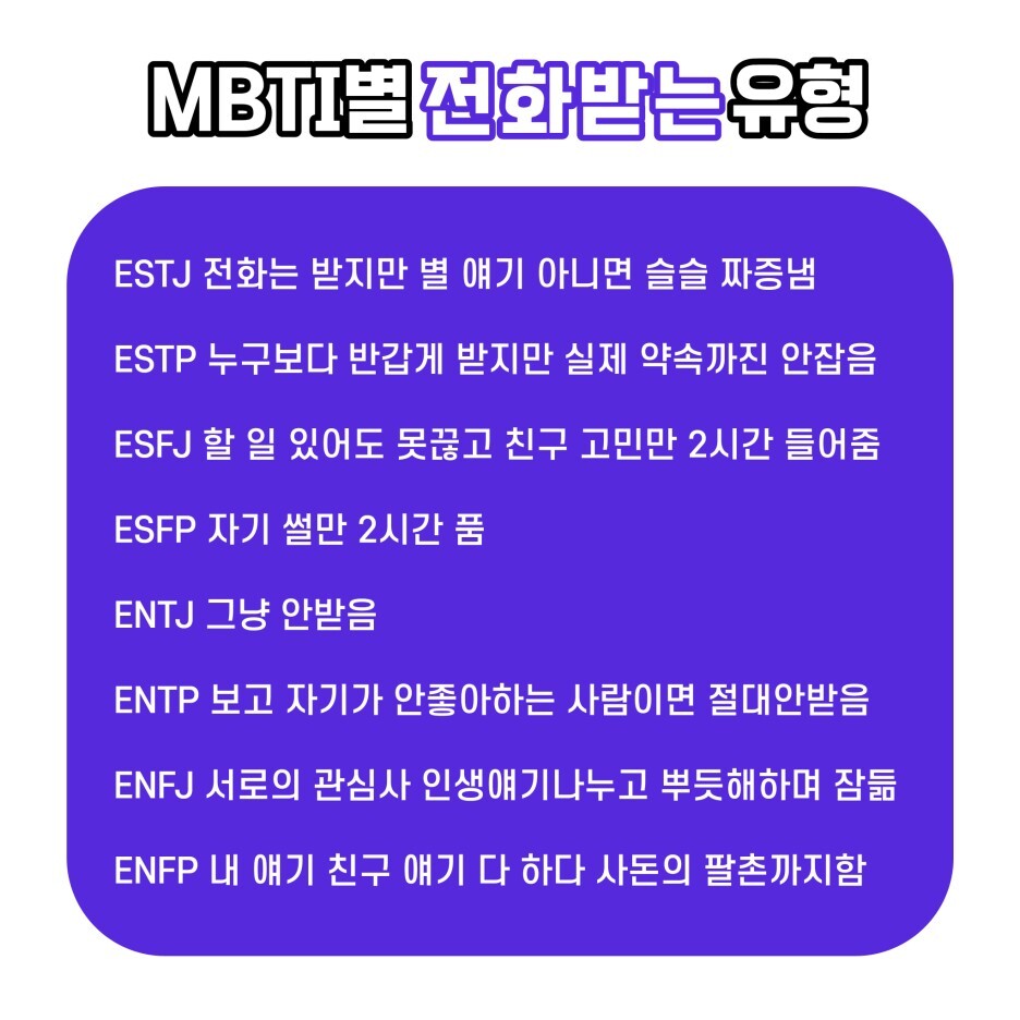 MBTI별 전화받는 유형에 대해서