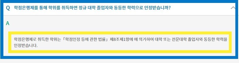 확인해 보면 학점은행제를 통해서
