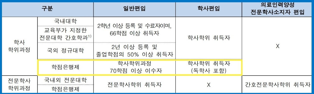 학점은행제 편입 종류는?